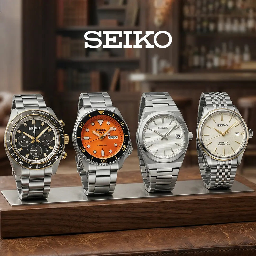 The Seiko 5 is a public favorite and the entry point to Seiko. These are sporty and casual automatic watches that go well with everyday wear without looking out of place. With variants designed for diving and active lifestyles, Prospex is ideal for people who prefer outdoor and adventure use. For formal and professional settings, the Seiko collection provides elegant automatic timepieces in the dress watch design in Presage. For those who want it all in one, the Seiko quartz range offers accurate and useful daily wear in both men's and women's styles.