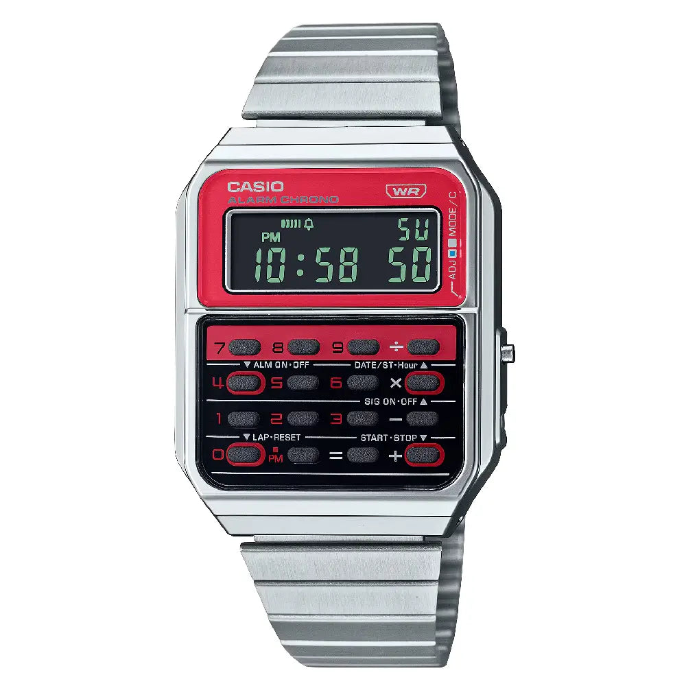 Casio Vintage Digital CA-500WE-4BDF Red Dial Stainless Steel Unisex Watch