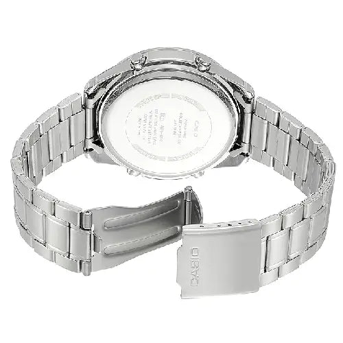 Experience classic style and smart functionality with the Casio Analog-Digital World Time Telememo AMW-810D-1AVDF Men's Watch. This sophisticated timepiece features a black analog-digital dial within a durable stainless steel case, complemented by a sleek stainless steel. With practical features like Telememo 30, World Time, 50-meter water resistance, and an amazing 10-year battery life, the AMW-810D-1AVDF is perfect for daily wear, travel, and staying organized, making it an ideal choice for the modern man.