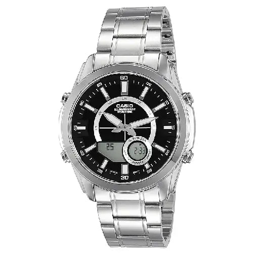 Casio Analog-Digital World Time AMW-810D-1AVDF Black Dial Stainless Steel Men's Watch
