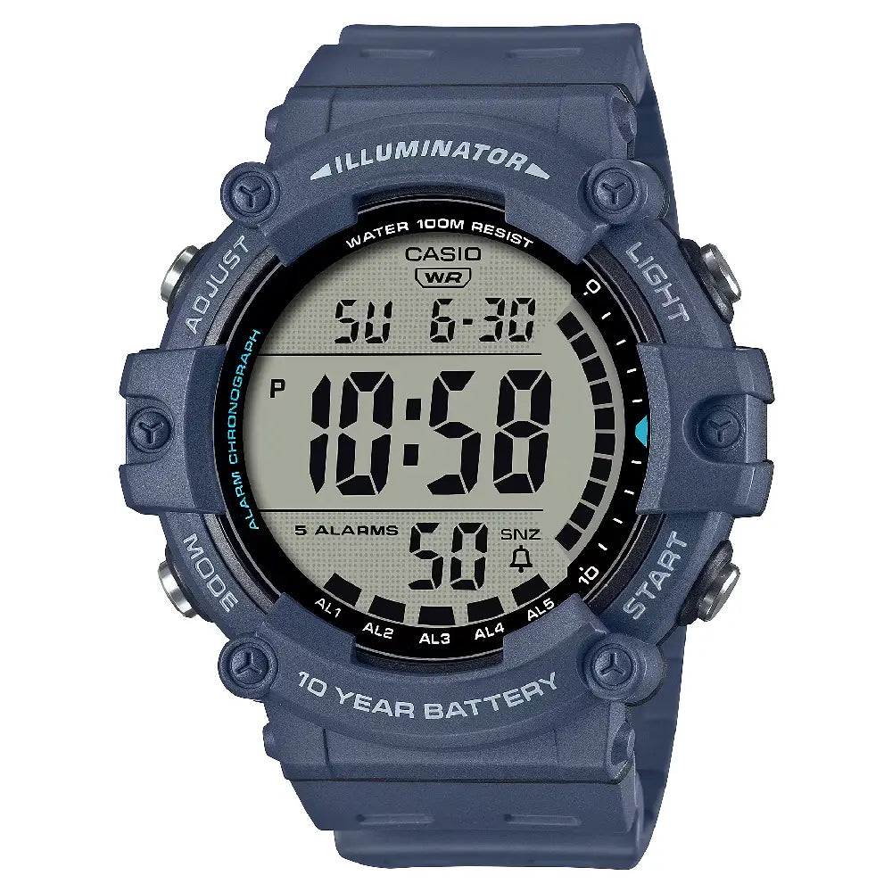 Experience ultimate readability with the Casio Digital AE-1500WH-2AVDF Men's Watch. This durable timepiece stands out with its extra-large, clear blue digital display, making it incredibly easy to read at a glance. Equipped with a reliable blue resin strap, 100-meter water resistance, and an amazing 10-year battery life, the AE-1500WH-2AVDF is built for daily adventures. Its essential features, including a stopwatch, dual time, and multiple alarms, make it a practical and dependable choice for those who value clarity and resilience in their watch.