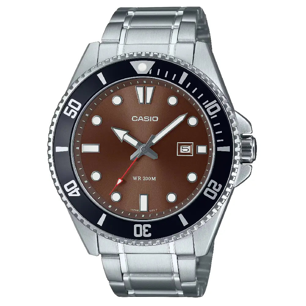 Casio Duro Analog Diver MDV-107D-5AVDF Brown Dial 44mm Stainless Steel Men's Watch