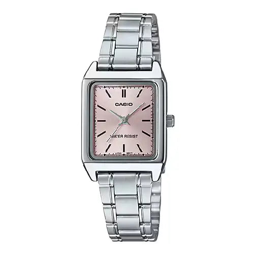 The Casio LTP-V007D-4EUDF is a classic and elegant timepiece designed for women. Part of the Enticer Ladies collection, this watch features a durable silver stainless steel rectangular case and a matching Stainless Steel Women's Watch. The sophisticated pink analog dial is easy to read, with contrasting silver-tone hands and markers. The simple, minimalist design makes it a versatile accessory for any occasion. This timepiece is designed for both style and practicality, offering water resistance and a durable mineral glass crystal. It runs on a reliable quartz movement, making it a perfect addition to any wardrobe.