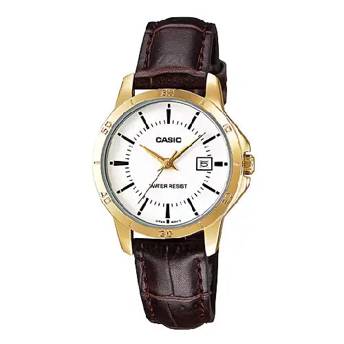 Casio Standard Analog LTP-V004GL-7AUDF White Dial Leather Strap Women's Watch