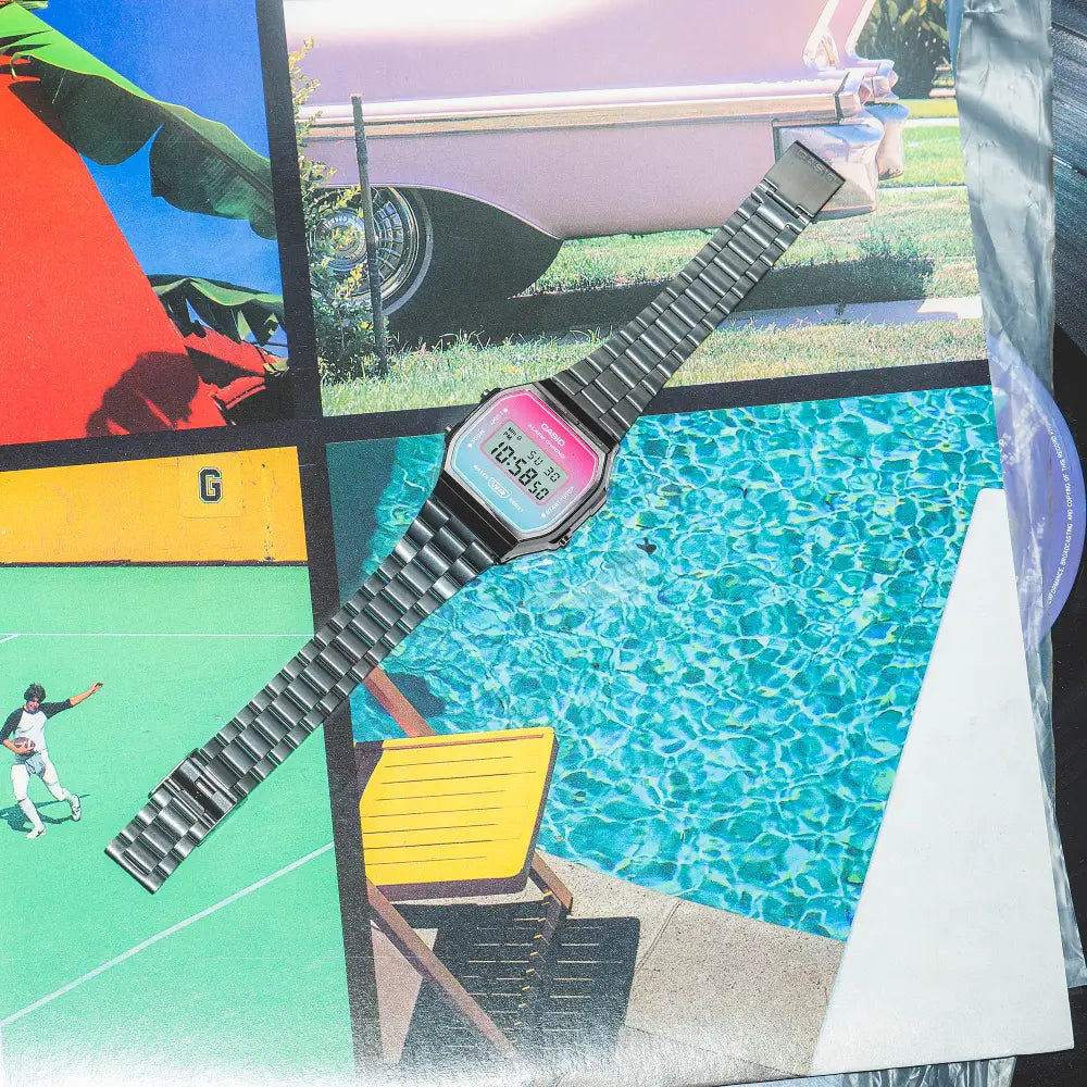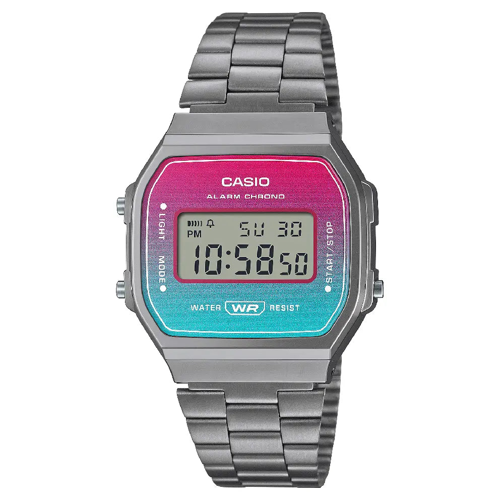 Casio Vintage Digital A168WERB-2ADF Pink and Blue Gradated Dial Silver Stainless Steel Unisex Watch