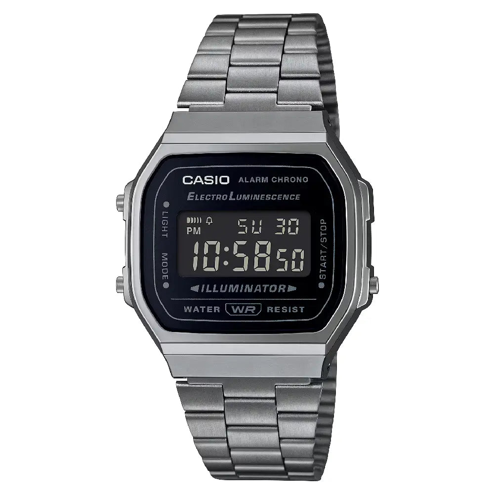 Casio Vintage Digital A168WGG-1BDF Black Dial Stainless Steel Unisex Watch