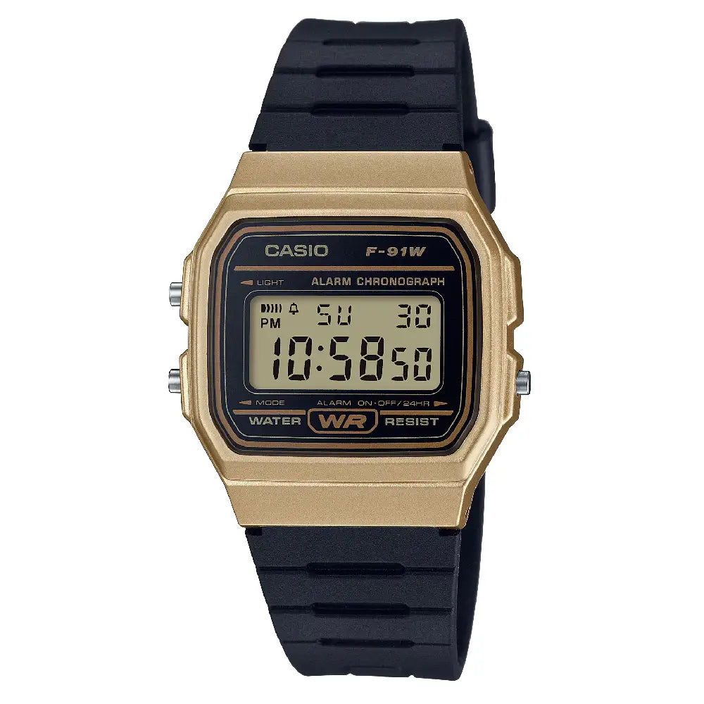 Casio Vintage Digital F-91WM-9ADF Gold Dial Resin Strap Unisex Watch