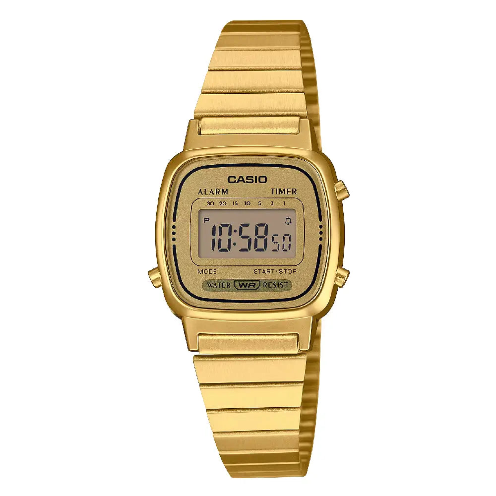 Casio Vintage Digital LA670WGA-9DF Gold Dial Stainless Steel Women's Watch
