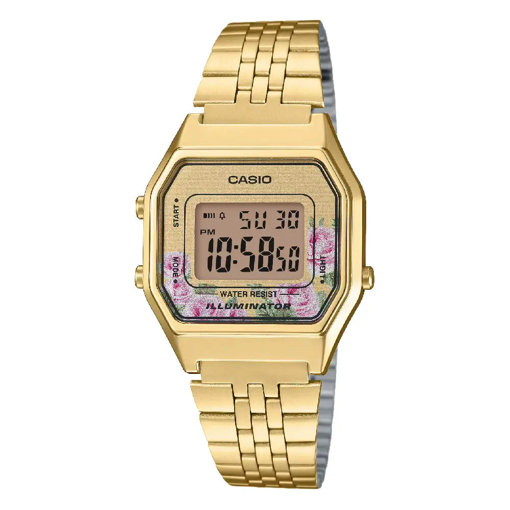 Casio Vintage Digital LA680WGA-4CDF Gold Dial Stainless Steel Women's Watch