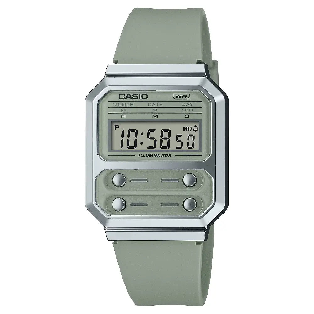 Casio Vintage F-100 Reissue A100WEF-3A Digital Display Green Resin 32.7mm Strap Unisex Watch