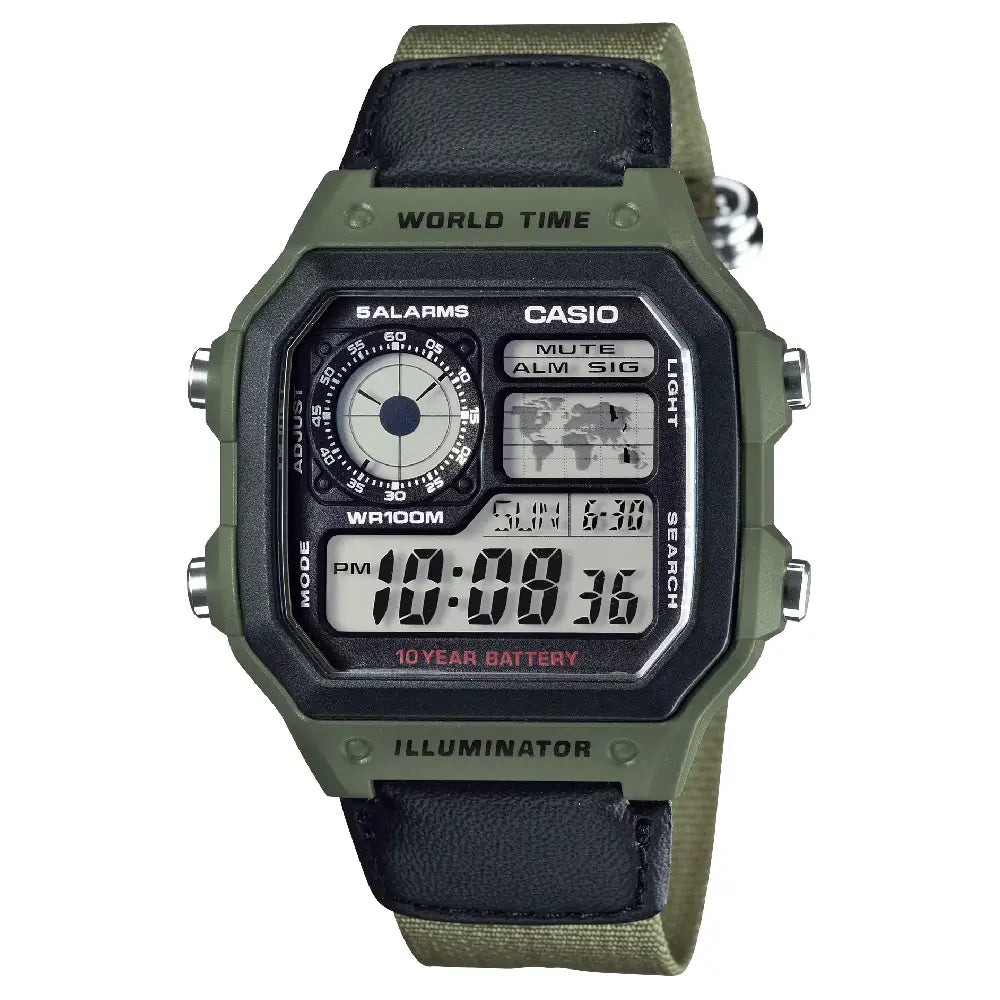 Casio World Time Digital AE-1200WHB-3BVDF Grey/Black Dial Digital and Analog Fabric Strap Men's Watch