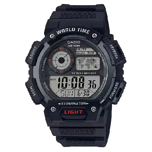 Casio World Time Digital AE-1400WH-1AVDF Grey/Black Dial Resin Strap Men's Watch