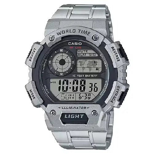 Casio World Time Digital AE-1400WHD-1AVDF Grey/Black Dial Stainless Steel Men's Watch
