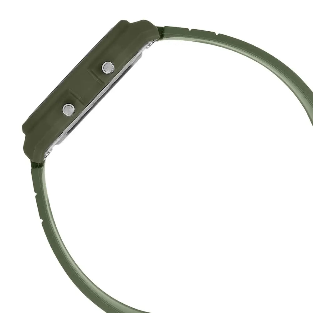 The Casio LF-30W-3ADF is a unique and eco-conscious digital watch designed for everyday adventurers. Part of the Casio Collection line, this watch features a durable green resin case and a comfortable, matching green resin strap made from bio-based resin, a sustainable material derived from renewable organic resources. Its most distinctive feature is the unique black digital dial, which includes a world map display that highlights your current time zone, synchronizing with the time below to help you track your global position. This singular timepiece is packed with reliable and handy functions, including Multi Time for four different cities, a 1/100-second stopwatch, a countdown timer, five daily alarms, and an LED backlight for low-light conditions. With its lightweight design and practical features, the LF-30W-3ADF is a versatile and stylish choice for casual wear and global travel.
