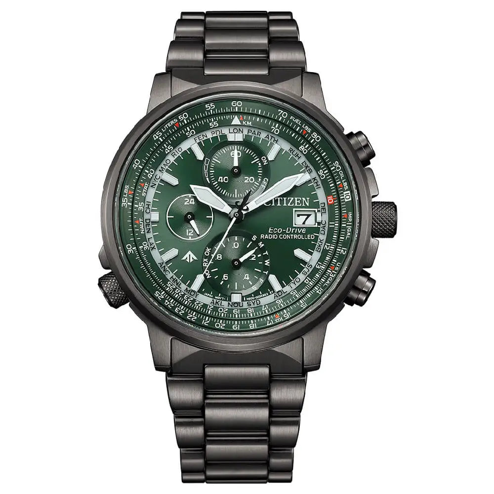Citizen Promaster Sky Navihawk A-T AT8304-57W Green Dial 41mm Grey Stainless Steel Men's Watch