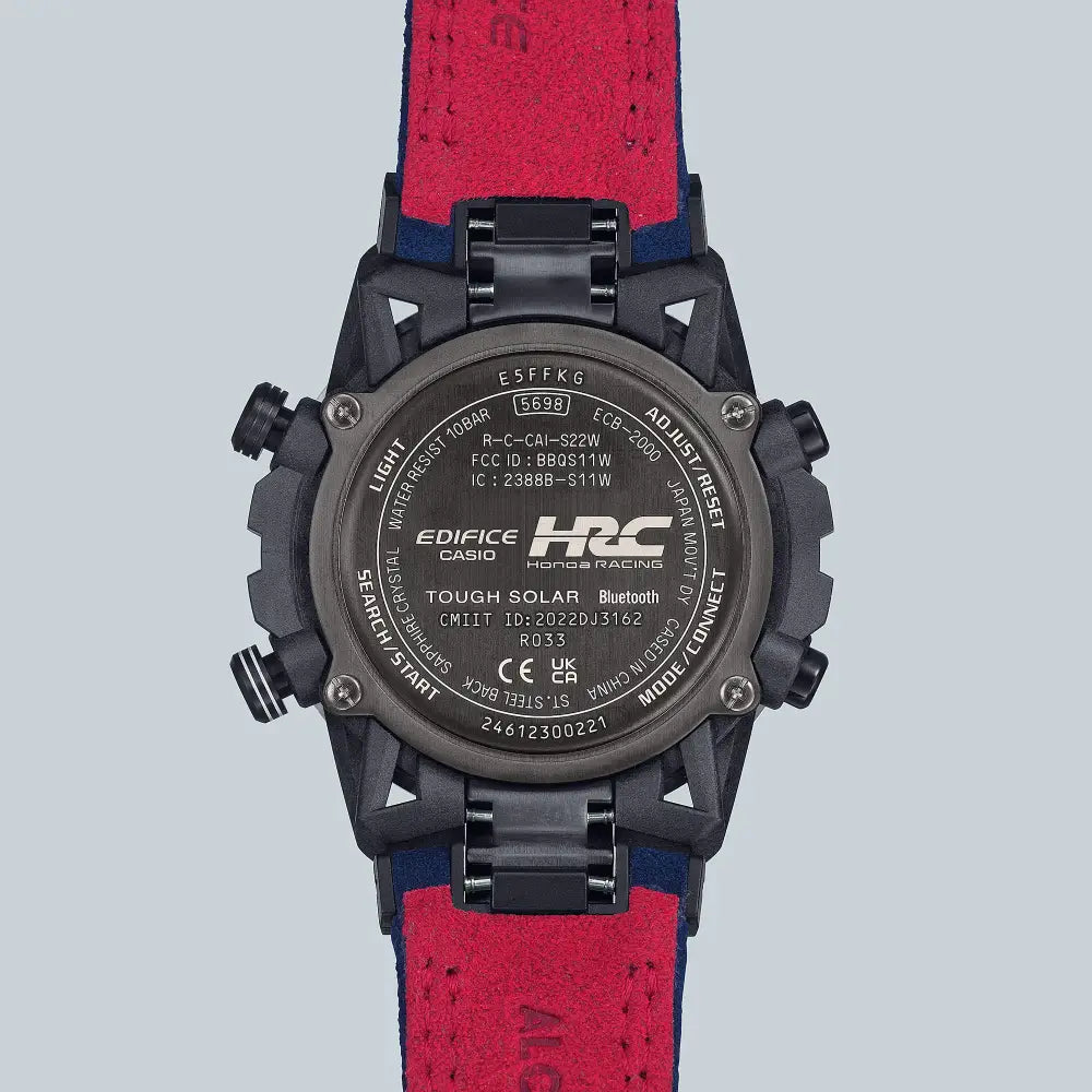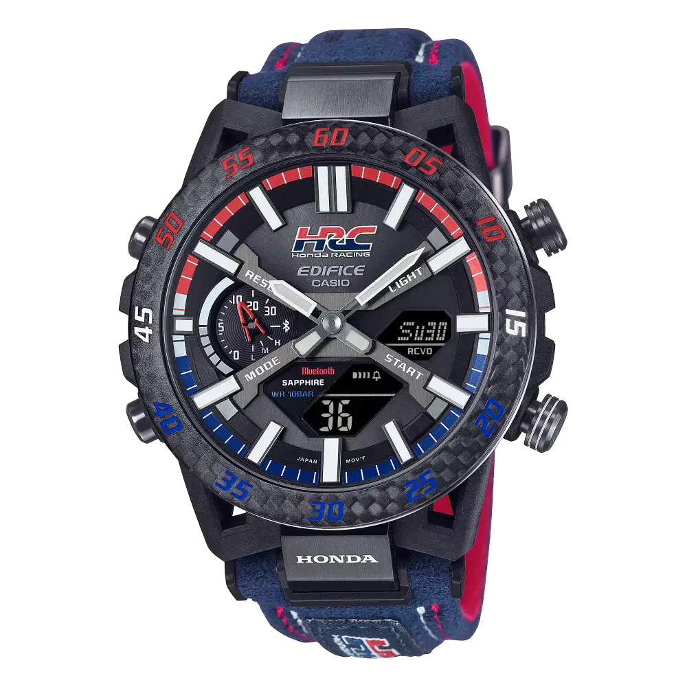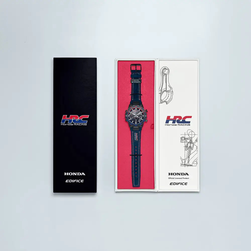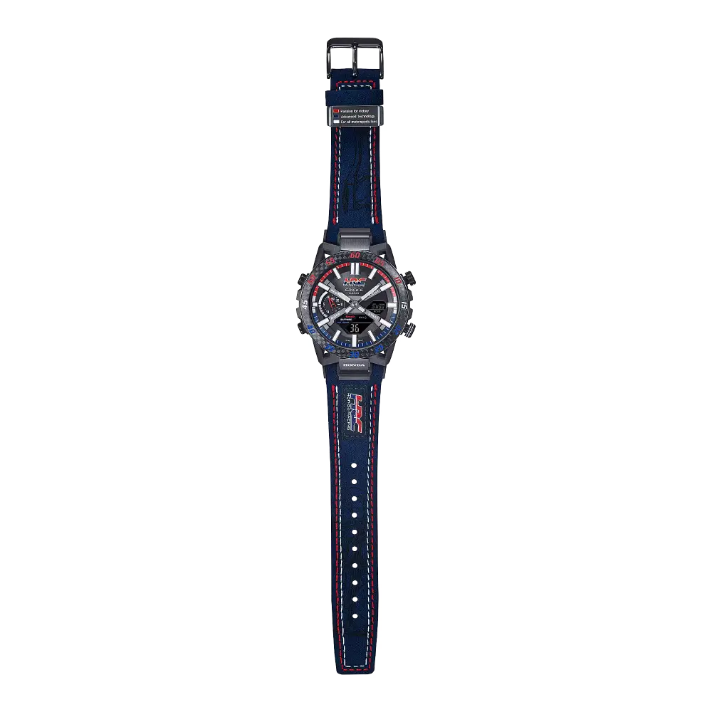Experience the power and precision of Honda Racing Corporation with the EDIFICE SOSPENSIONE ECB-2000HR-1ADR. Featuring a bold tricolor design and carbon bezel, this high-performance timepiece embodies the speed and intelligence of HRC on the racetrack. The band loop spells out the meaning behind each color - passion, technology, and motorsports - for a true collaboration of style and spirit.