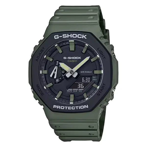 From G-SHOCK, a tough watch brand that strives for ultimate durability, comes the GA-2110SU-3ADR model. With its utilitarian colors and double-molded bezel cover, this thin analog-digital watch exudes a casual individuality that complements any streetwear fashion or environment. A must-have for style and functionality.