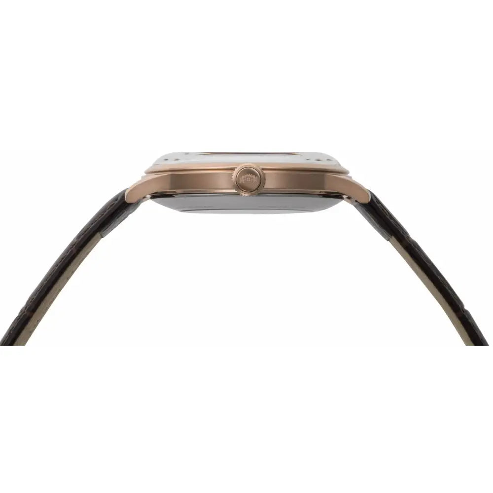 The Orient RA-AG0001S (often referred to as the "Bambino Open Heart" or "Classic Semi-Skeleton") is a sophisticated timepiece that bridges the gap between traditional dress watches and mechanical artistry. Part of Orient's renowned Classic collection, this model adopts the beloved case silhouette and signature domed crystal of the Bambino line but distinguishes itself with a bold aperture on the dial. It is designed for the gentleman who appreciates the elegance of the past but wants a modern glimpse into the engineering of the present. The watch features a crisp White Dial housed in a luxurious Rose Gold-tone Stainless Steel case. The dial is minimalist yet striking, adorned with rose gold-tone dauphine hands and applied baton indices that perfectly match the case warmth. The defining feature is the "Open Heart" window at the 9 o'clock position, which reveals the oscillating balance wheel of the movement. This constant motion adds a dynamic "heartbeat" to the face of the watch, serving as a focal point that draws the eye without cluttering the design. Internally, the timepiece is powered by the in-house Caliber F6T22 automatic movement. Unlike older Orient movements, this modern engine supports both hacking (seconds-hand halt) and hand-winding, offering superior functionality. The movement is visible not only through the dial but also via the exhibition caseback. Paired with a rich brown leather strap and protected by a domed mineral crystal that adds a vintage distortion, the RA-AG0001S is a dress watch that wears its heart on its sleeve.