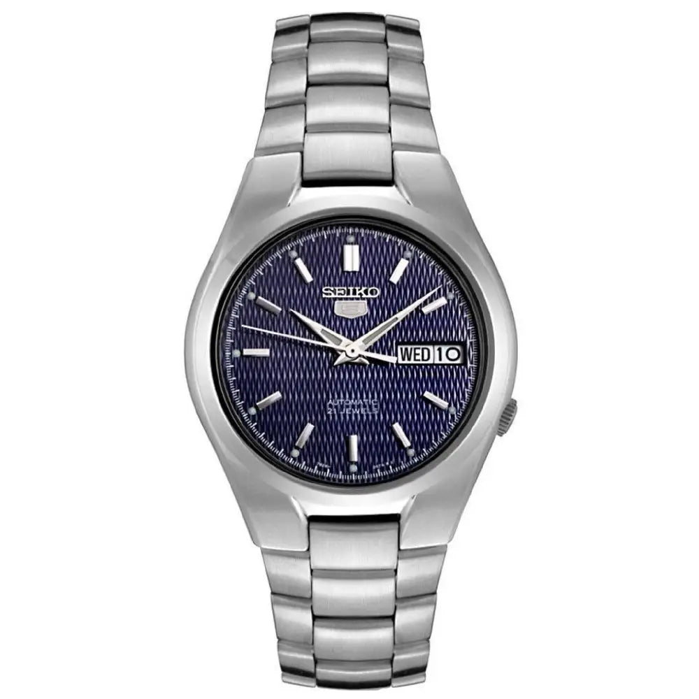 Experience classic style and reliable performance with the Seiko 5 Automatic SNK603K1 men's watch. This timeless timepiece features a captivating blue dial with a unique texture, housed within a durable 37mm stainless steel case. Powered by a dependable in-house automatic movement (Seiko Caliber 7S26) that requires no battery, this watch includes a convenient day and date display. The transparent case back offers a glimpse into the intricate mechanics of the watch. With its luminous hands and markers, a scratch-resistant Hardlex crystal, and a water resistance of 30 meters, the Seiko SNK603K1 is a perfect choice for those who appreciate both classic design and dependable functionality.
