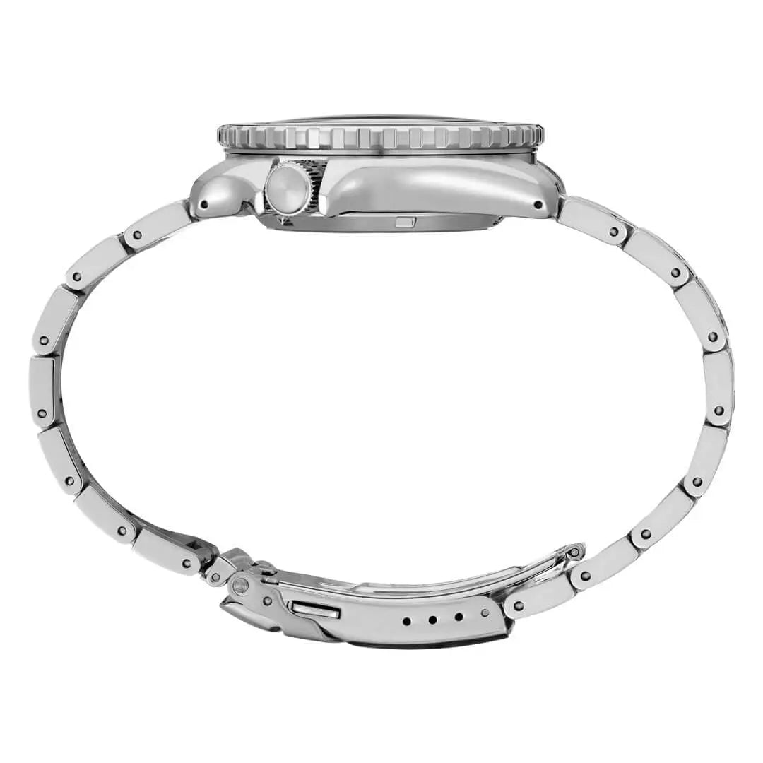 The Seiko SRPK97K1 is a modern and reliable timepiece from the iconic Seiko 5 Sports collection, paying homage to the classic SKX dive watch design. It features a striking blue dial with a day and date display, housed in a durable 42.5mm stainless steel case. Powered by the in-house 4R36 automatic movement, it has a 41-hour power reserve and can be hand-wound and hacked for precise time setting. The watch includes a unidirectional rotating bezel for tracking elapsed time and is protected by a curved Hardlex crystal. With a robust 100-meter water resistance rating and a solid stainless steel that fastens with a secure three-fold clasp, this watch is built for both rugged performance and everyday style. Its classic design and reliable mechanics make it a perfect choice for watch enthusiasts and newcomers alike.