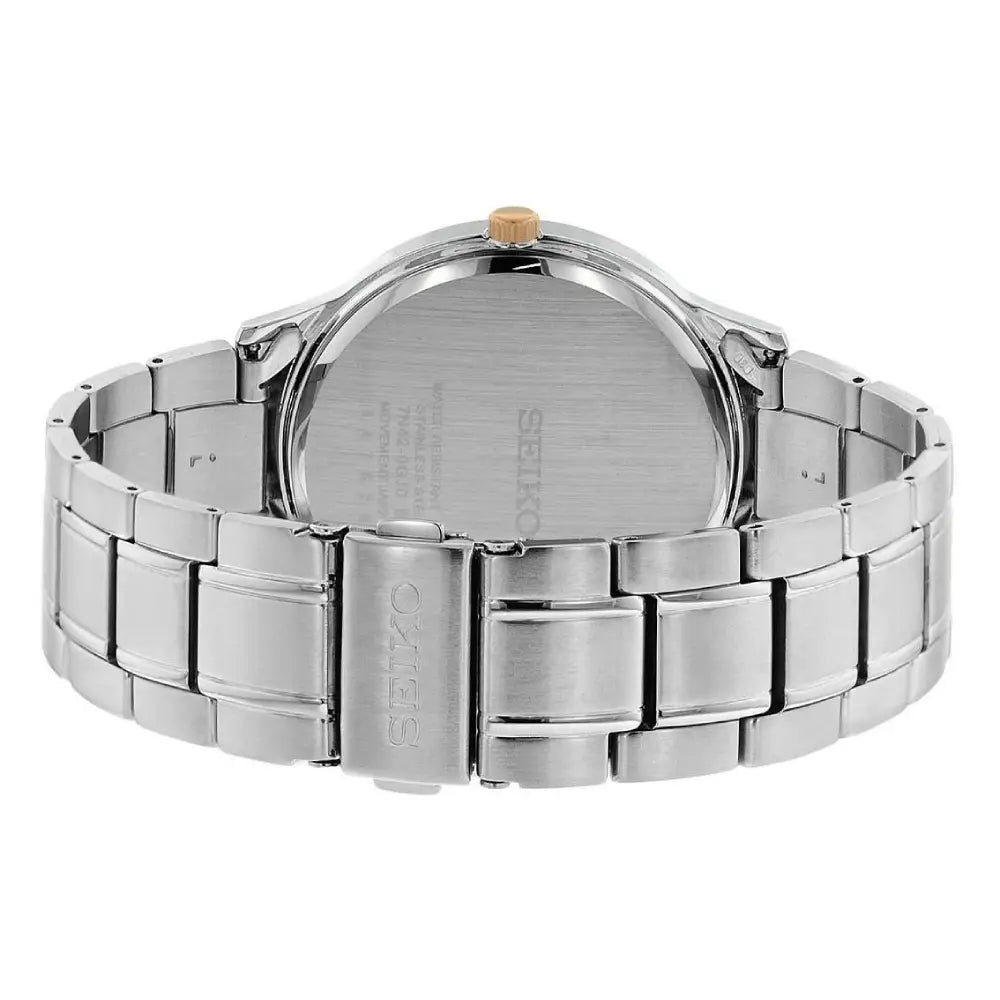 The Seiko Conceptual SGEH90P1 is a refined and dressy iteration of the "Discover More" series, distinguishing itself with a rich, warm color palette that pairs perfectly with both business and casual attire. This update transforms the standard quartz timepiece into a sophisticated accessory, offering a sleek profile and reliable performance for everyday wear. The watch features a sharp Brown Dial with sleek silver-tone indices and hands, housed in the polished stainless steel case measuring 9.7mm in height and 40.6mm in width. The dial is protected by a Curved Hardlex crystal, which adds a subtle vintage distortion and durability. The analog hands provide a clean reading of the local time, while the date display at the 3 o'clock position offers essential modern utility. Powered by a reliable quartz movement (approx. 5-year battery life), the module includes the accurate 7N42 caliber. With a slim profile and a 100-meter water-resistant construction, this "Brown Dial" classic offers a perfect blend of elegance, durability, and everyday practicality.