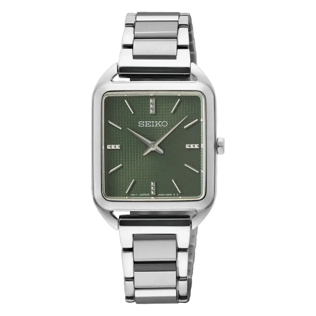 Seiko Essentials SWR075P1 Square Case Green Dial 26.0mm Stainless Steel Women's Watch