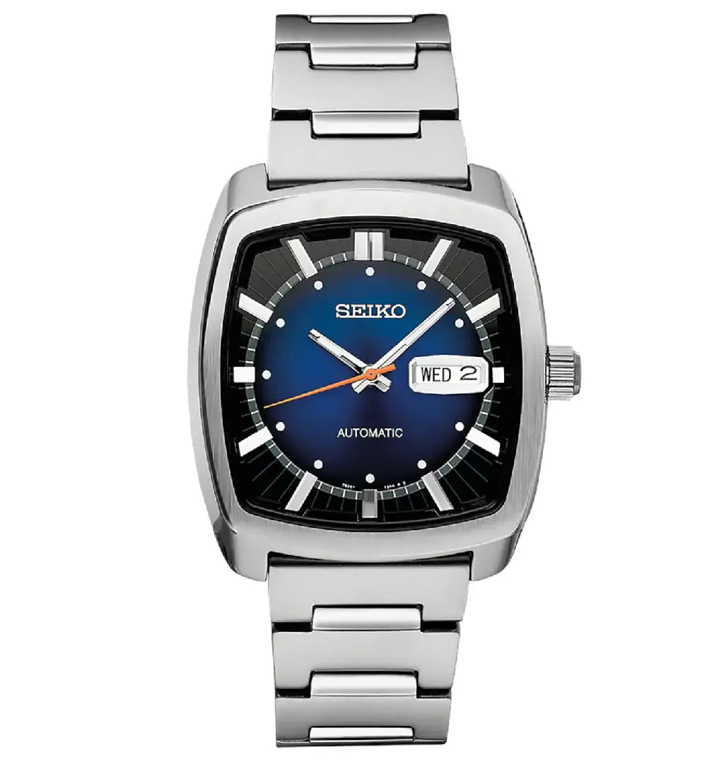Experience a blend of retro-inspired style and modern performance with the Seiko Recraft Automatic SNKP23 men's watch. This timepiece features a distinctive blue dial with an iridescent sunburst effect and a comfortable cushion-shaped 40mm stainless steel case. Powered by a reliable, in-house automatic movement (Seiko Caliber 7S26), this watch requires no battery and includes a convenient day and date display. The movement is visible through a transparent case back. The watch is protected by a scratch-resistant Hardlex crystal and is complemented by a solid stainless steel bracelet. With a water resistance of 50 meters, the Seiko SNKP23 is a perfect choice for those who appreciate both a unique aesthetic and dependable functionality.