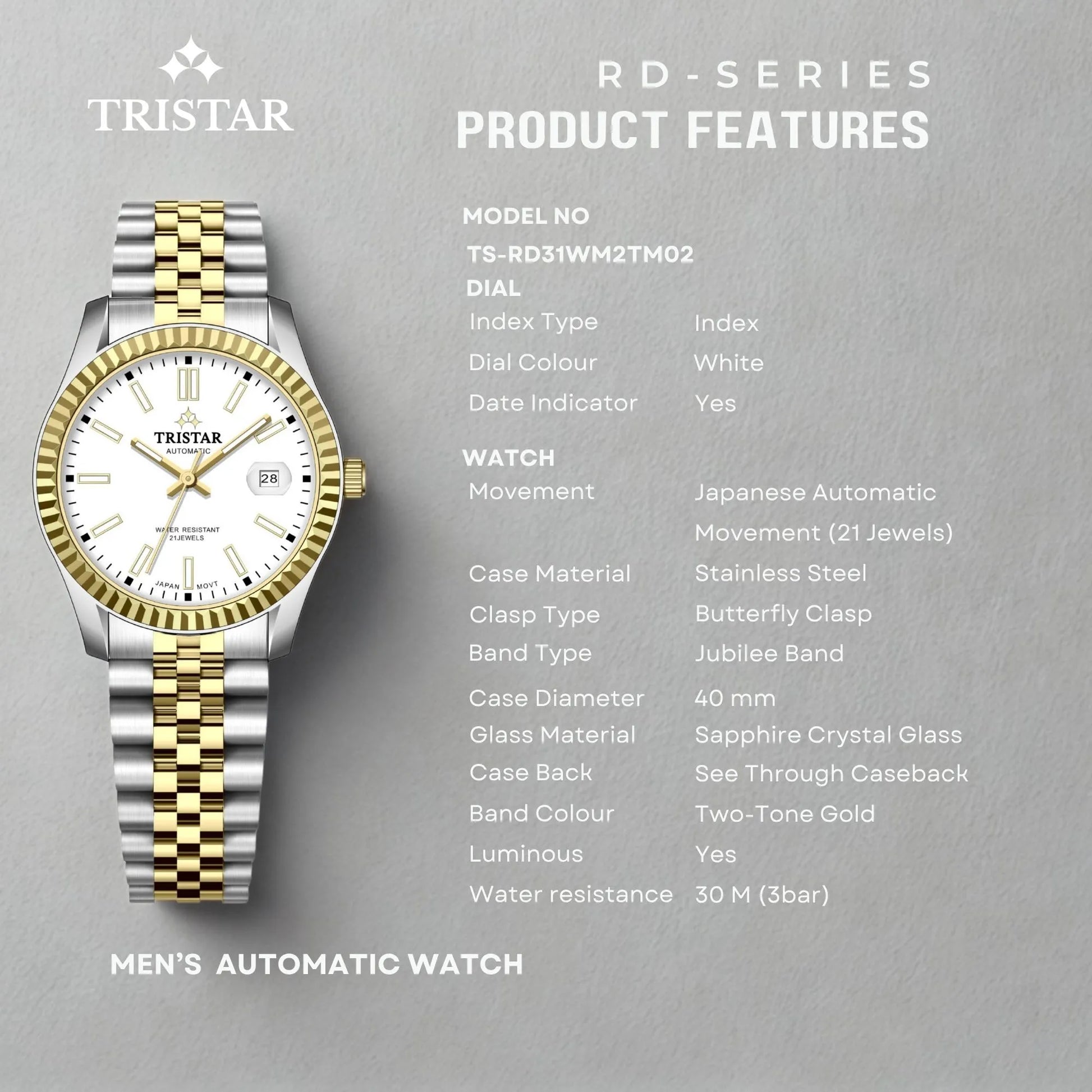 Tristar RD-Series Automatic White Dial 40mm Stainless Steel Men's Watch - RD31WM2TM02
